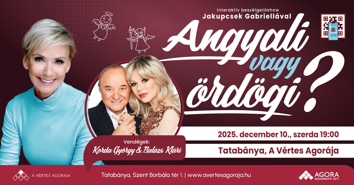 A Vértes Agorája saját fejlesztésű interaktív talk show-ja, az Angyali vagy ördögi? című produkció decemberi vendégei Korda György és Balázs Klári lesznek.
